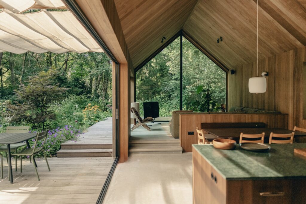 Start je dag met een douche onder de dennen of een bad in de buitenlucht. Luister naar de vogels vanuit de hangmat. Je speelt een potje tafeltennis of Kubb of leest een boek op de loungebank. ‘s Avonds klinkt je lievelingsmuziek uit de Sonos terwijl je met de pui open kookt. Daarna gaat het vuur aan en komen de marshmallows tevoorschijn.
